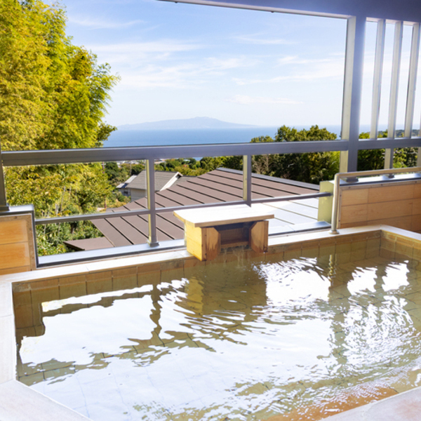 どの専用風呂からも伊豆大島が浮かぶ海を望むことができ、最高の開放感をご堪能ください。